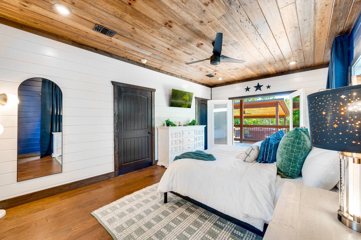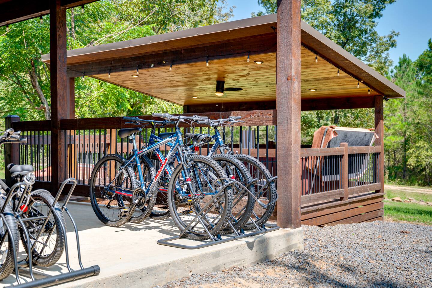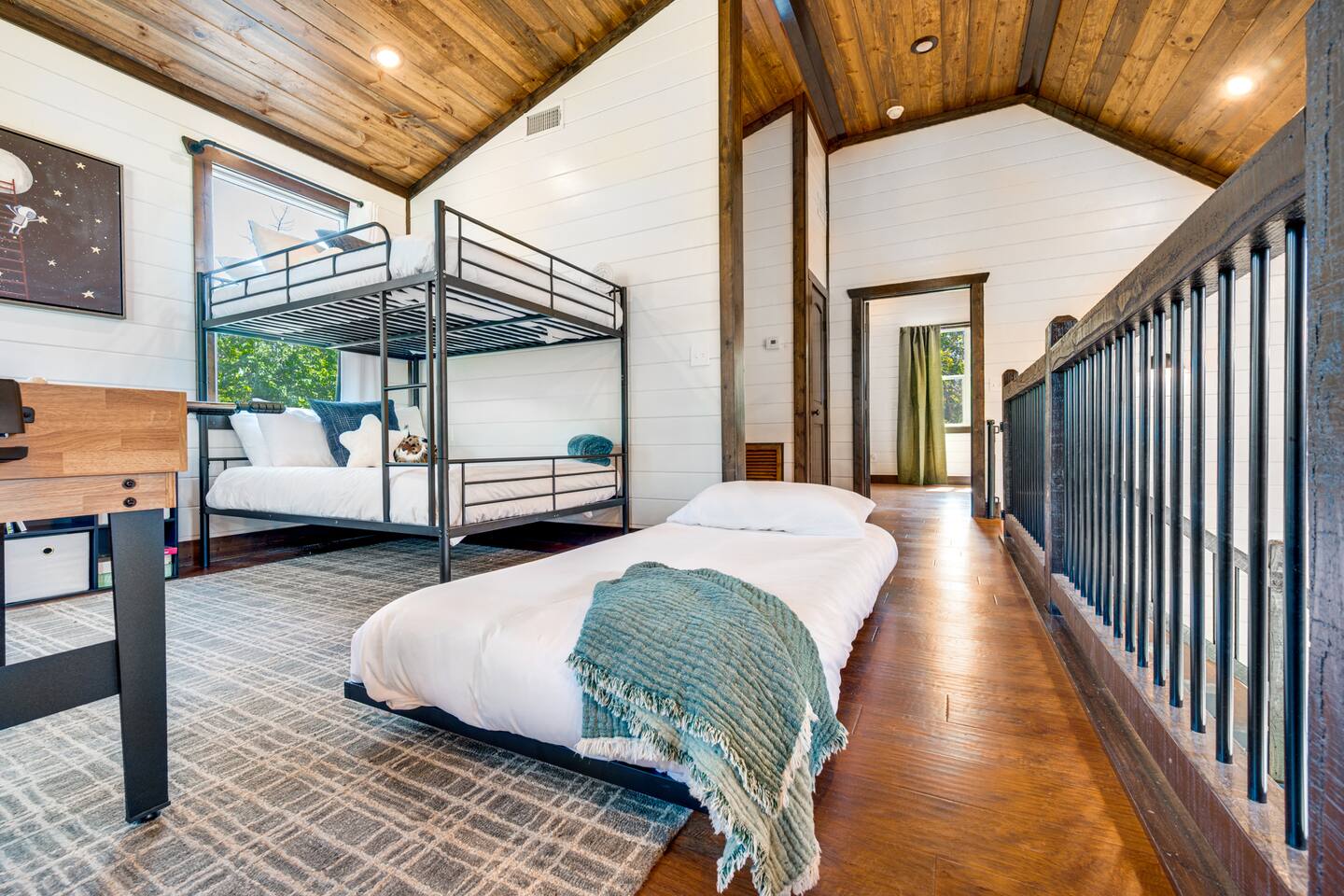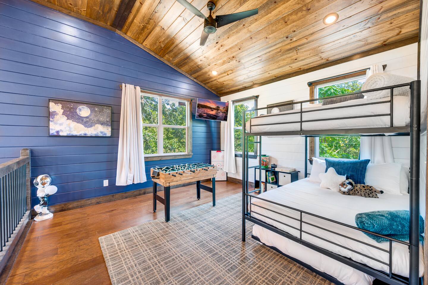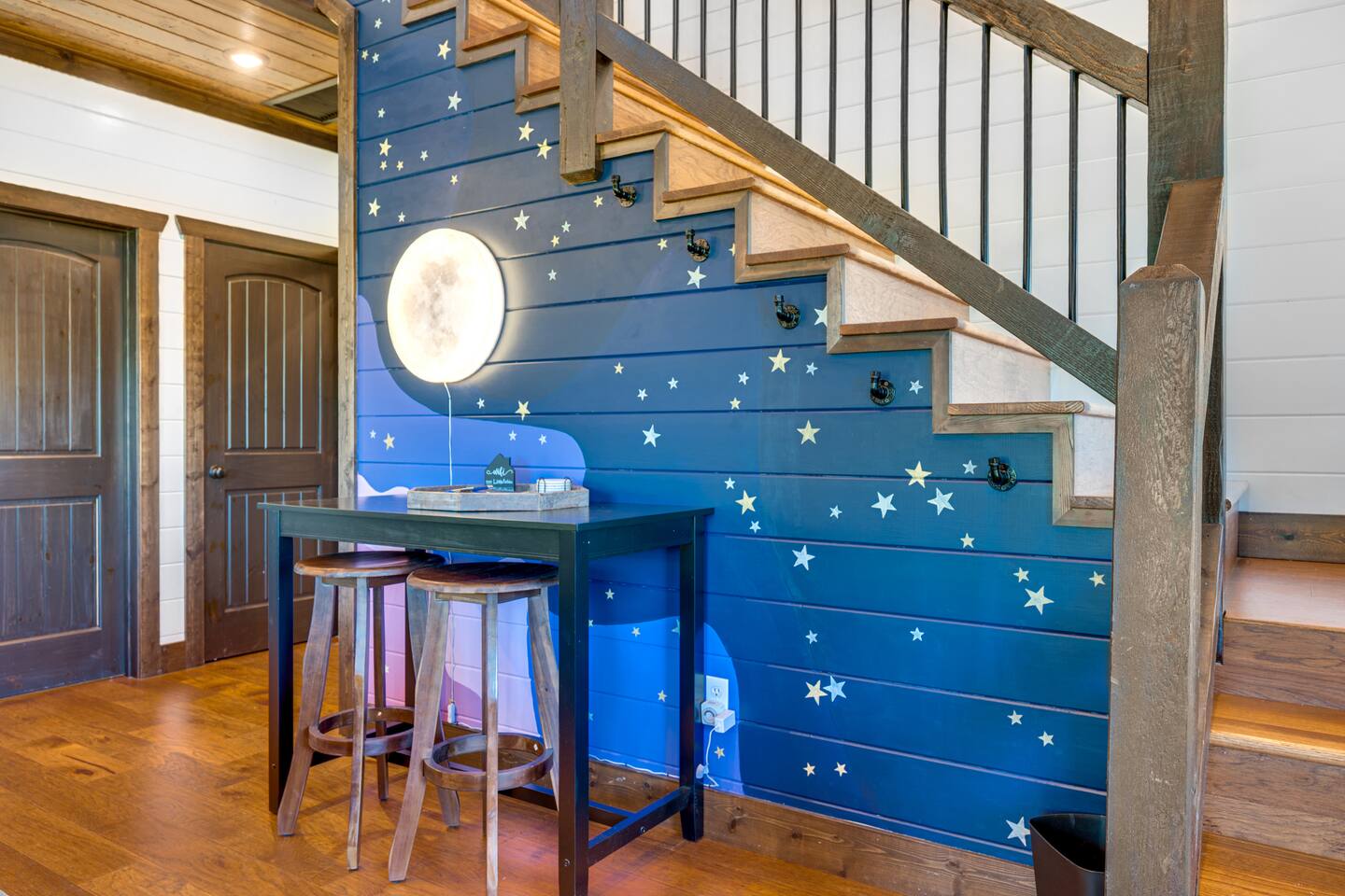 Welcome to your Broken Bow retreat! Sleeping up to 9 guests, this family friendly home will ensure a comfortable space for you and your family. ☞Hot tub ☞Fire pit ☞Stargazing Dome ☞Paddle Boards ☞BBQ ☞Pond ☞Insta-Worthy mural ☞10 drive from Hochatown & Broken Bow ☞3 bedrooms, 3.5 baths (1 bath tub) ☞1 king bed, 1 queen bed with 2 ensuite bathrooms ☞Full size bunk beds with trundle ☞ Family-friendly (high chair, toys, baby gate) ☞Outdoor dining table ☞Parking for 4 Vehicles *No pets allowed*