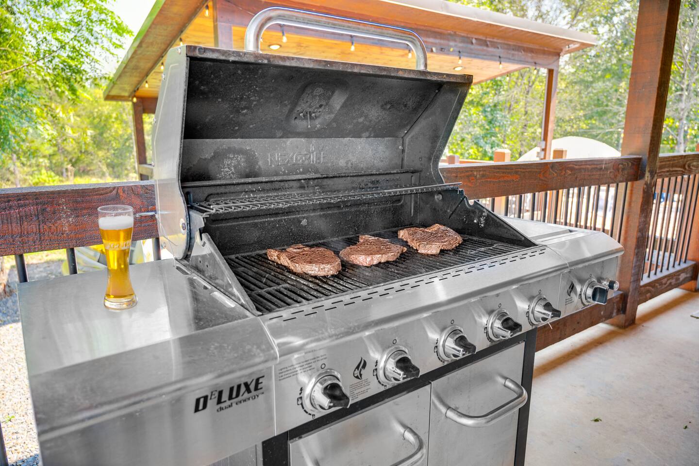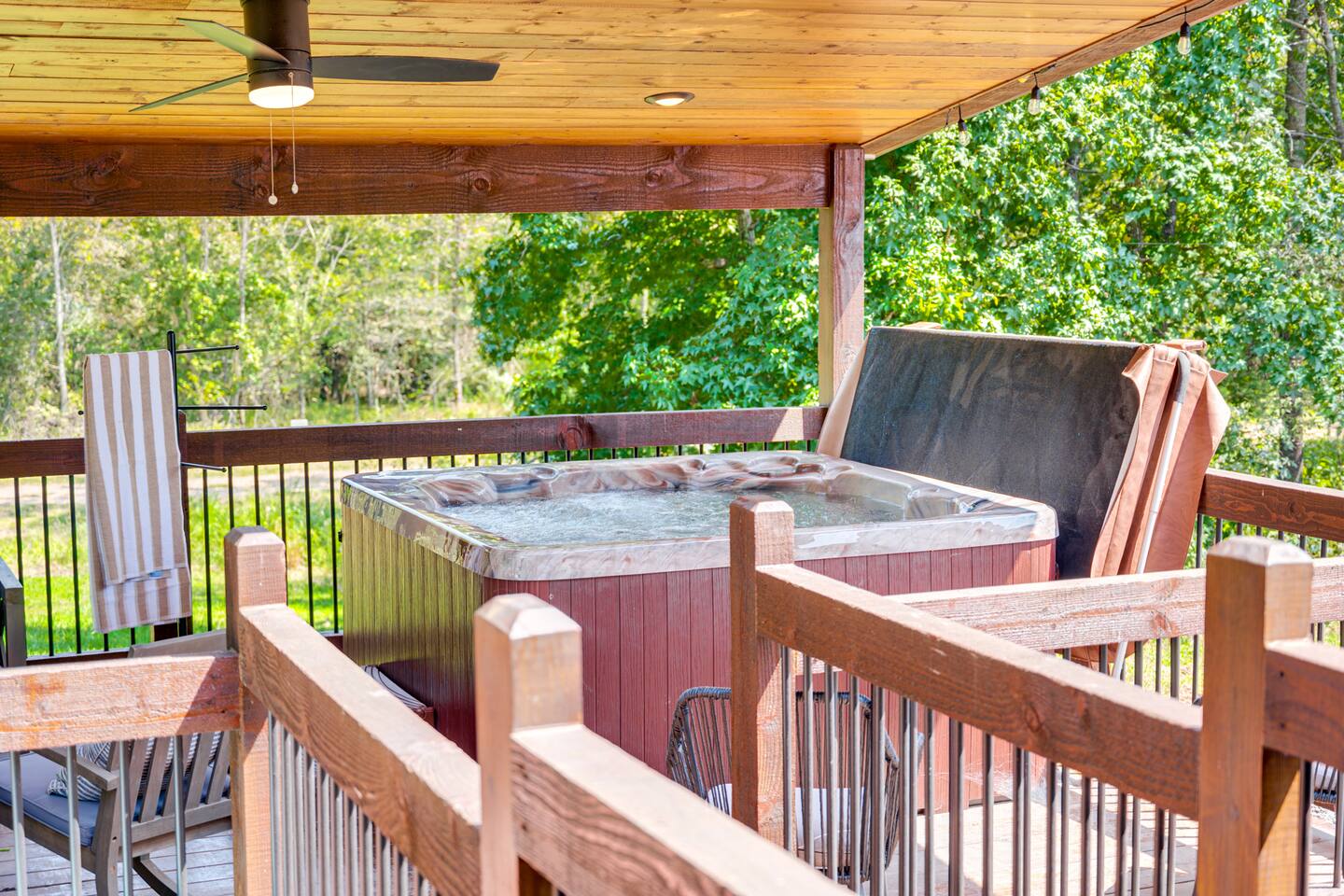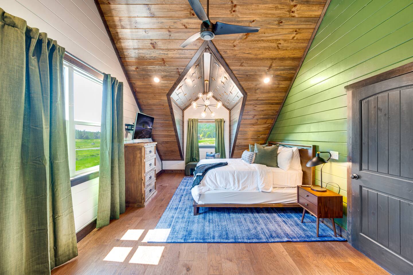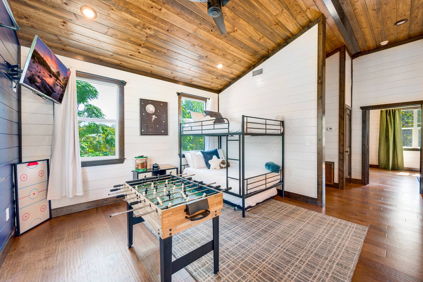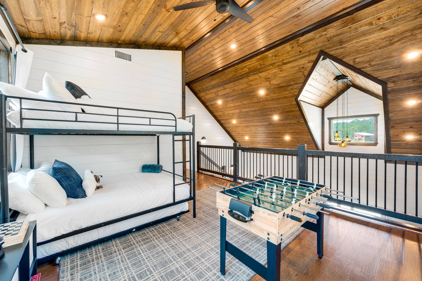 Welcome to your Broken Bow retreat! Sleeping up to 9 guests, this family friendly home will ensure a comfortable space for you and your family. ☞Hot tub ☞Fire pit ☞Stargazing Dome ☞Paddle Boards ☞BBQ ☞Pond ☞Insta-Worthy mural ☞10 drive from Hochatown & Broken Bow ☞3 bedrooms, 3.5 baths (1 bath tub) ☞1 king bed, 1 queen bed with 2 ensuite bathrooms ☞Full size bunk beds with trundle ☞ Family-friendly (high chair, toys, baby gate) ☞Outdoor dining table ☞Parking for 4 Vehicles *No pets allowed*